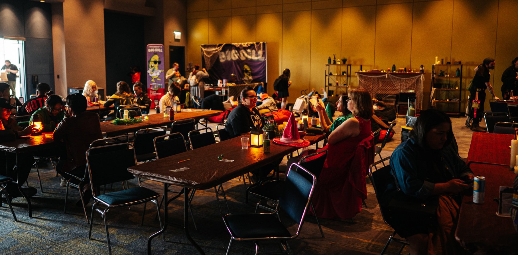 Welcome to The Tavern, where fans can come to relax, socialize, and refuel after a long day of adventure and LARP. Looking for an area to meet up with your party? Stop by S406 to grab a seat, with a snack, and watch a performance or dance the evening away. Master new skills in our workshops, embark on fresh RPG adventures, or toast your party with a 21 + elixir. The journey continues here, and every corner holds a new tale.